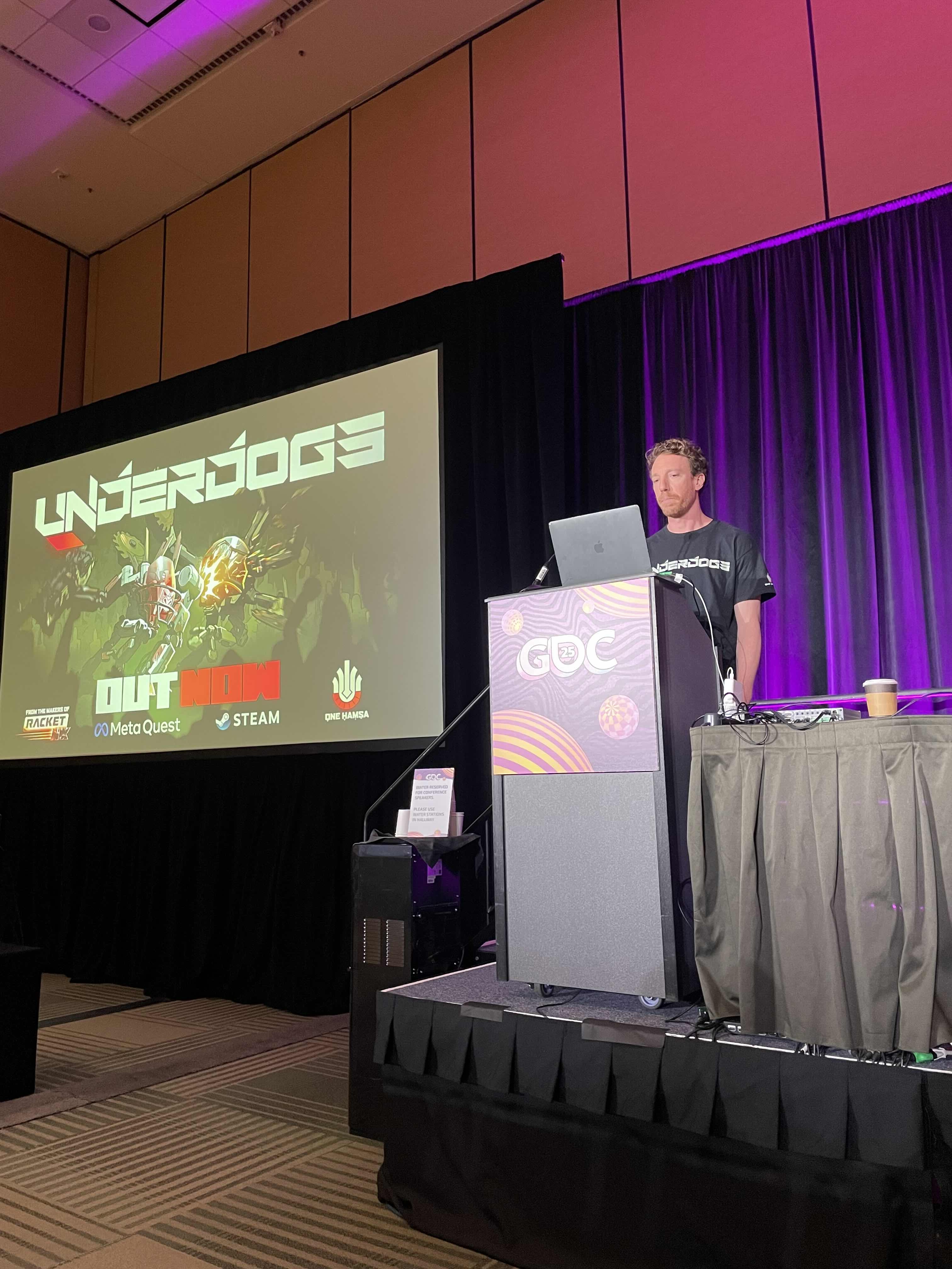 I handled the sound design, integration, and music supervision for UNDERDOGS — a VR brawler nominated at the D.I.C.E. and G.A.N.G. Awards — as well as Racket: Nx, among others.