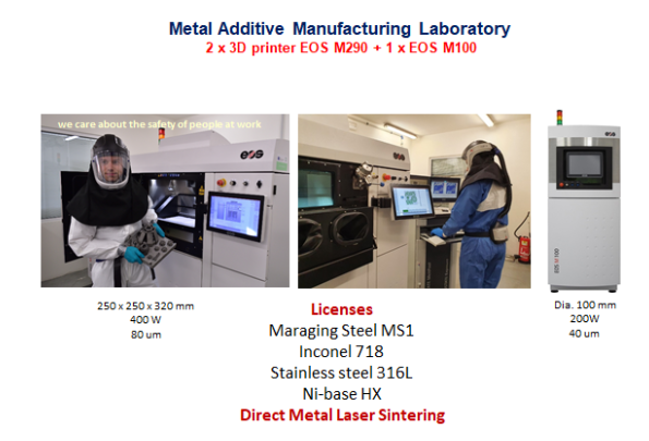 Equipment: 2 x 3D printer EOS M290 + 1 x EOS M100;