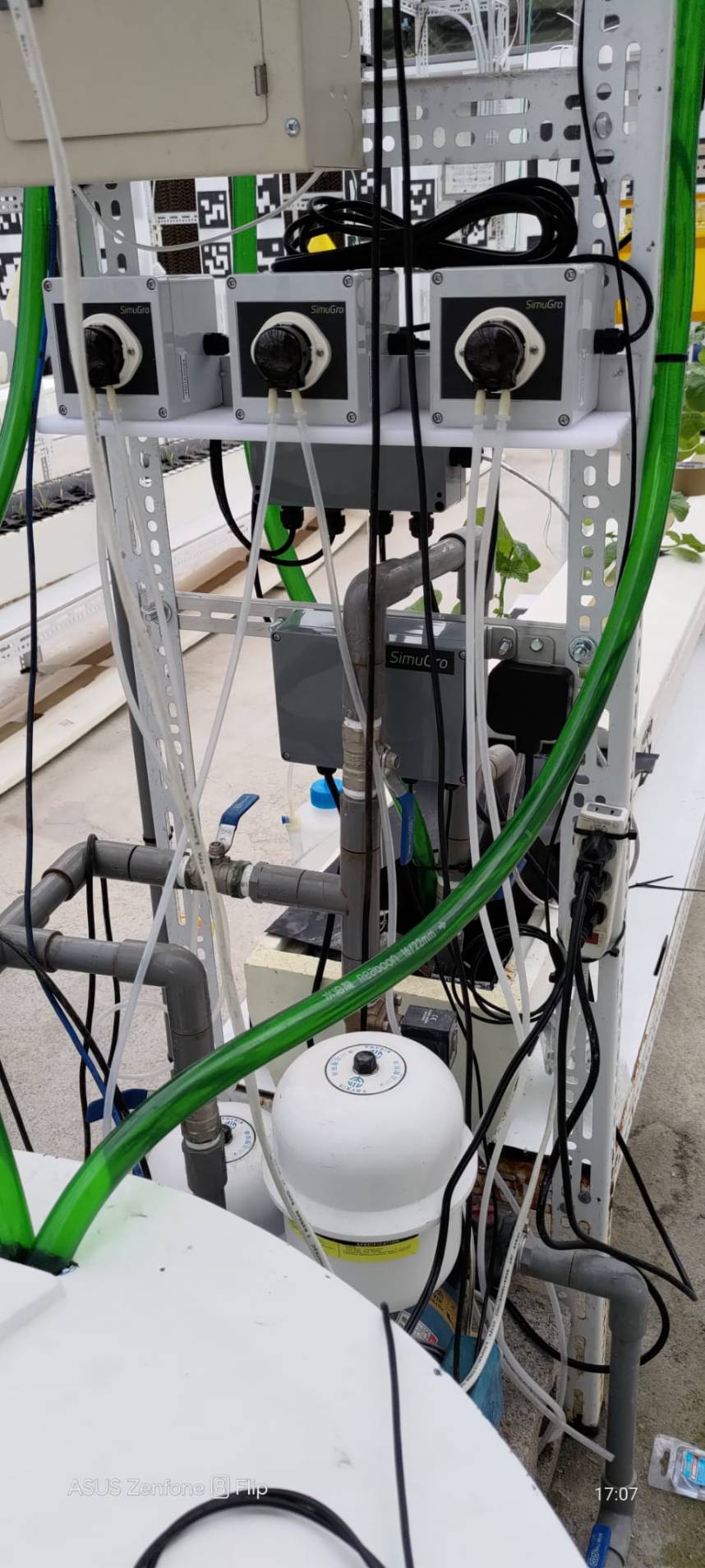 Dosing pumps providing automatic wireless setpoint or remote manual adjustment of EC (NPK), PH etc. providing optimal growth conditions.
