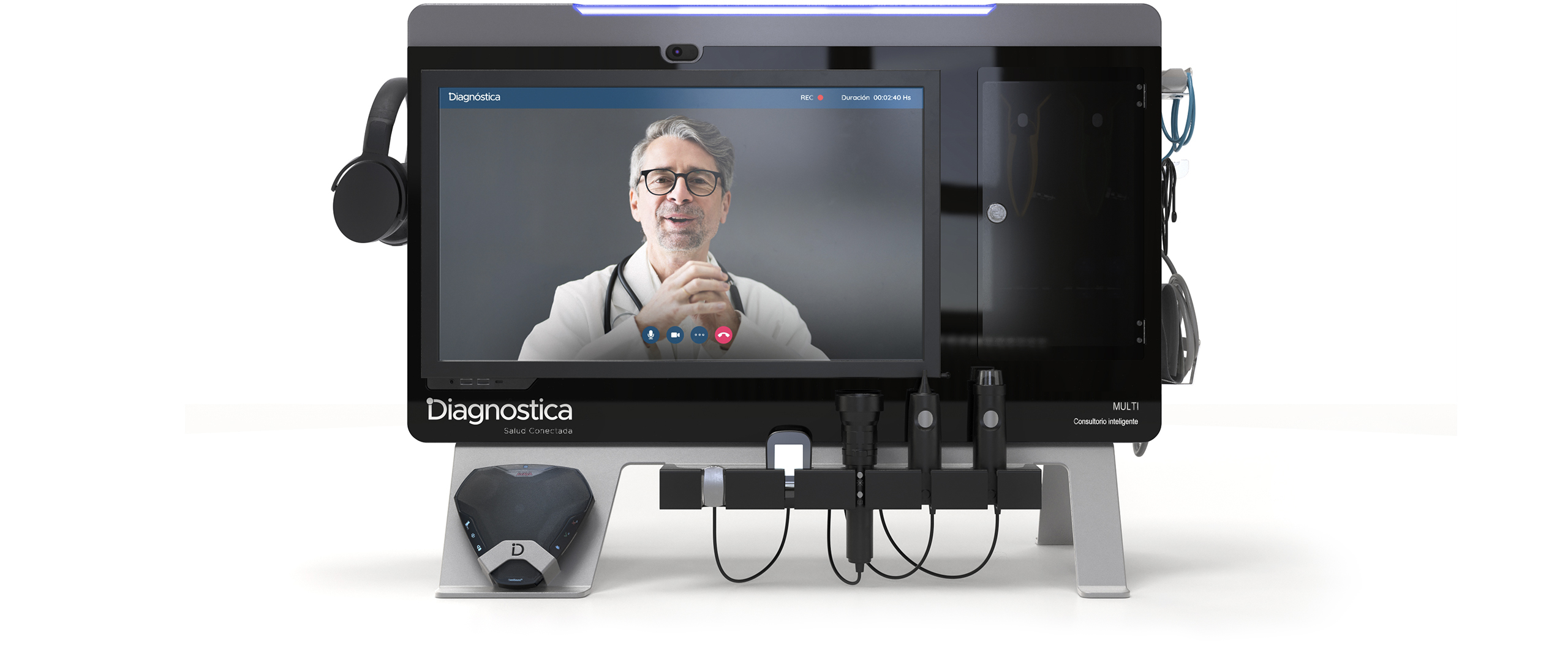 Multi Diagnóstica se constituye como una solución completa para Centros de Salud, Clínicas, Hospitales o Sanatorios que necesiten potenciar y extender los alcances de la atención sanitaria mediante una plataforma de telemedicina. Este sistema permitirá que el profesional no médico (enfermero, paramédico, etc.), pueda realizarle al paciente diversos chequeos, o bien efectuar un videoconsulta médica donde él mismo, guiado por un profesional médico al otro lado de la plataforma, utilizará distintos dispositivos para acceder a datos que le permitan la realización de un diagnóstico seguro y eficiente.