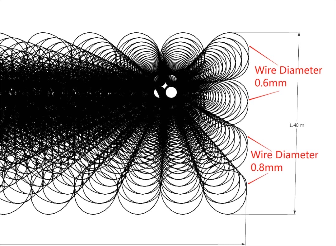 The "AMN" system is an engineering protection system consisting of a spatial four-level net, which can have dimensions of 10 x 5 x 1.4 m or 15 x 5 x 1.4 m. This net structure is created using ring chains with a diameter of 0.5 m, which are connected to each other by special wire twisting both lengthwise and vertically, forming a stable and secure protection barrier.