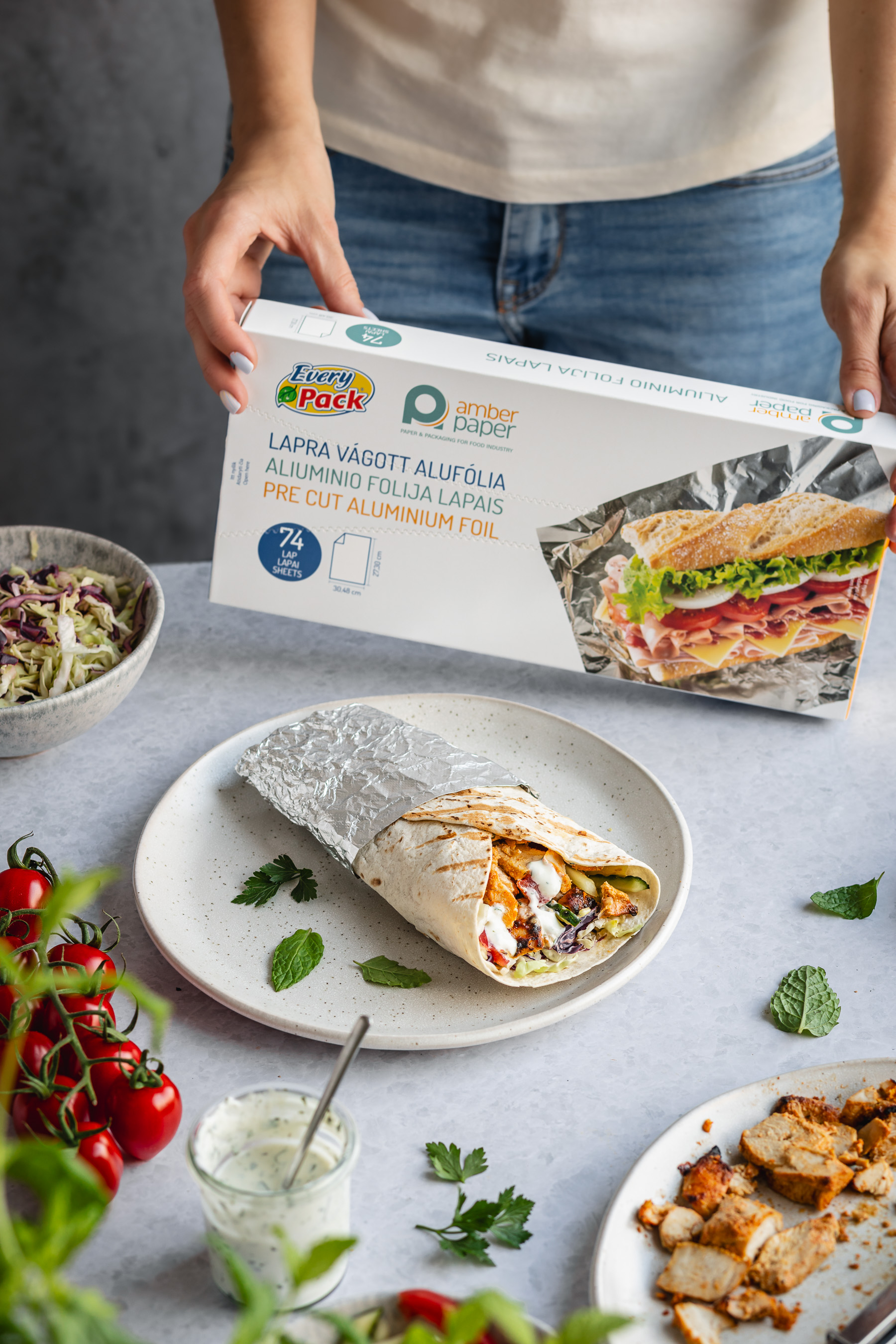 Amber Paper high-strength aluminum foil in sheets is ideal for cooking, roasting, grilling, and keeping food fresh.