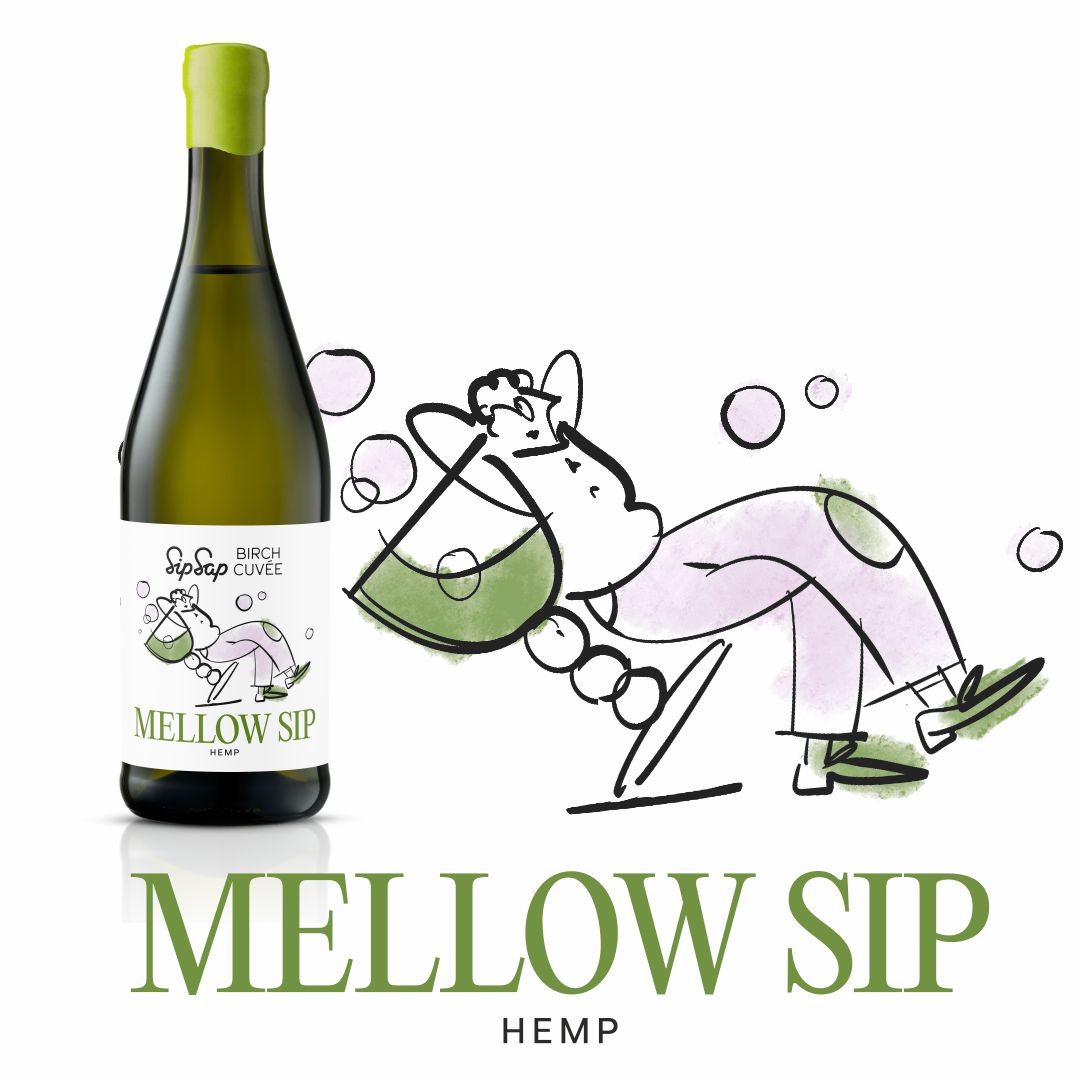 MELLOW SIP -fermented birch water with hemp.
