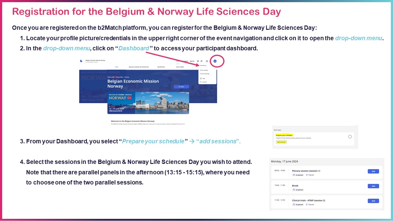Second step: sign up for the Life Sciences Day and/or book meetings (see frame 2 and/or 3)