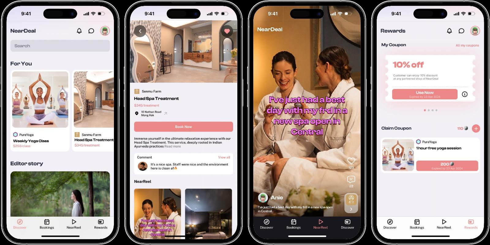 NearDeal differentiates itself by leveraging cutting-edge AI technology to create a seamless and rewarding experience for both wellness service providers and consumers. The platform not only allows users to book appointments effortlessly but also helps merchants generate high-quality promotional content through AI-powered tools like "NearReel." Additionally, our proprietary "NearPoints" system enhances customer retention and referral engagement, ultimately driving revenue growth for businesses by rewarding users for referring friends and family to the merchants they often patronize.