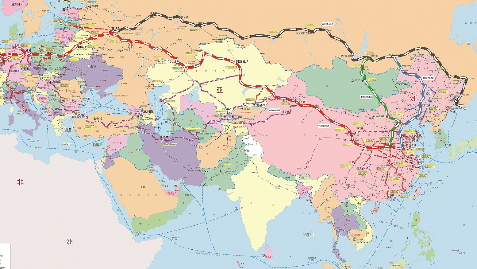 International multimodal transport with customs clearance in China—from South Korea, Japan, Taiwan, Southeast Asian countries, and Europe to and from Eastern Europe, the Middle East, and Central Asia.