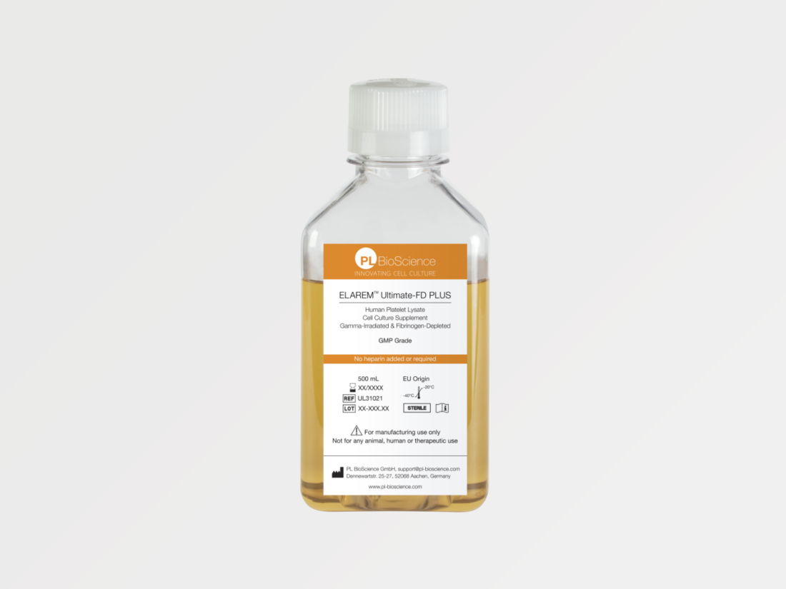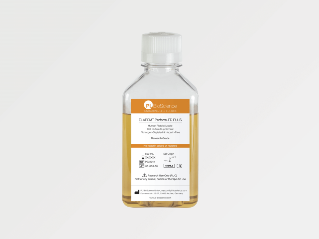 PL BioScience GmbH offers advanced human Platelet Lysate (HPL) products in both GMP grade and Research grade formulations, supporting robust cell growth in vitro and facilitating translation from laboratory research to regulated manufacturing processes. ELAREM™ Perform GMP Grade is produced under strict GMP and ISO 9001:2015 standards in Europe, using a closed sterile system and EU-sourced platelets, ensuring consistent quality in every batch. HPL serves as an animal-free, xeno-free alternative to Fetal Bovine Serum (FBS), providing growth factors and cytokines that support cell proliferation in various research and biopharmaceutical manufacturing settings. Gamma-irradiation is applied to enhance viral safety, aligning with safety management practices.