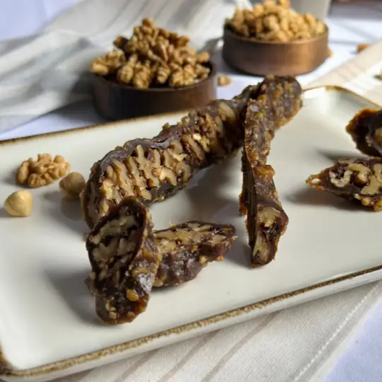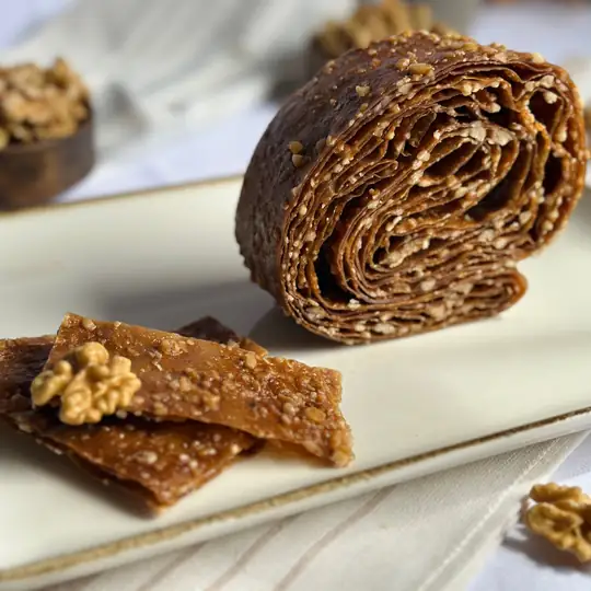 Köme is similar but shaped into rolls or pieces and typically contains walnuts or hazelnuts, making it a nutritious and energy-rich snack.