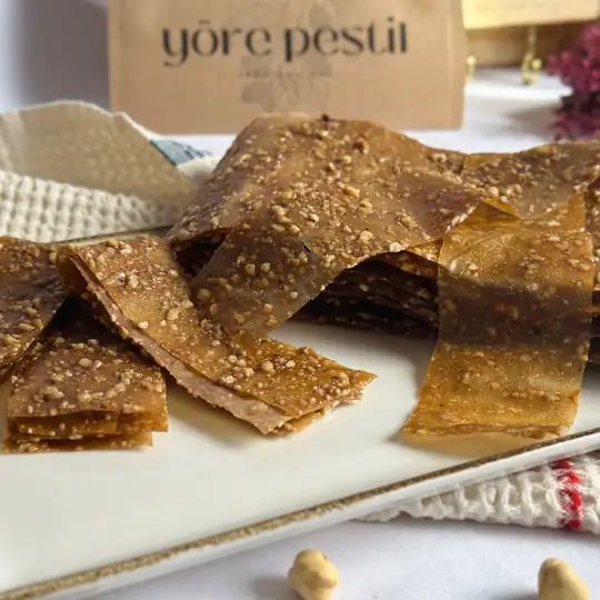 Pestil is a thin, dried fruit sheet produced by cooking mulberry juice with natural ingredients and spreading it out to dry.