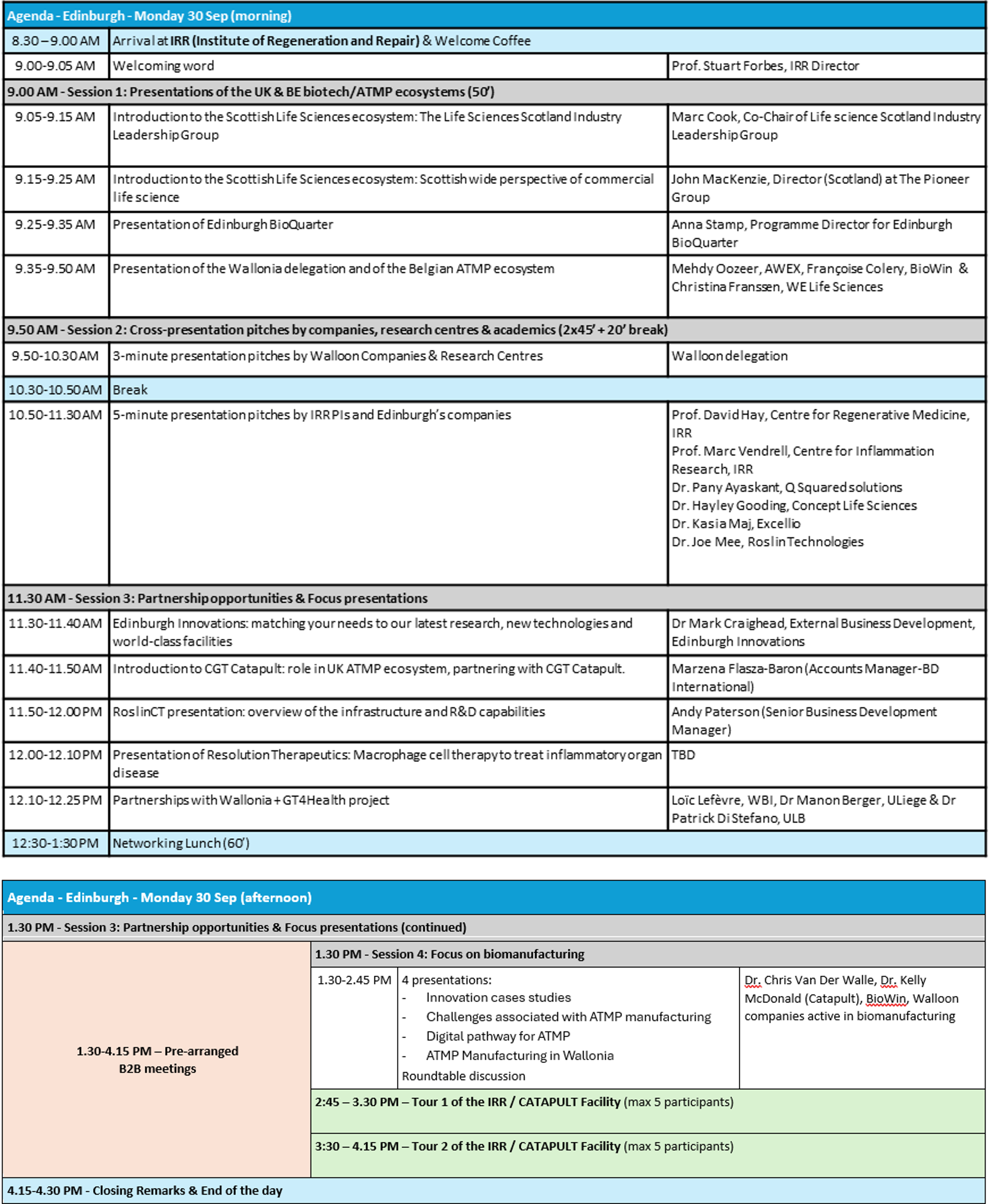 Day at the Edinburgh Bioquarter for a knwoledge exchange event including cross-presentations, networking moments, and pre-arranged one to one meetings.