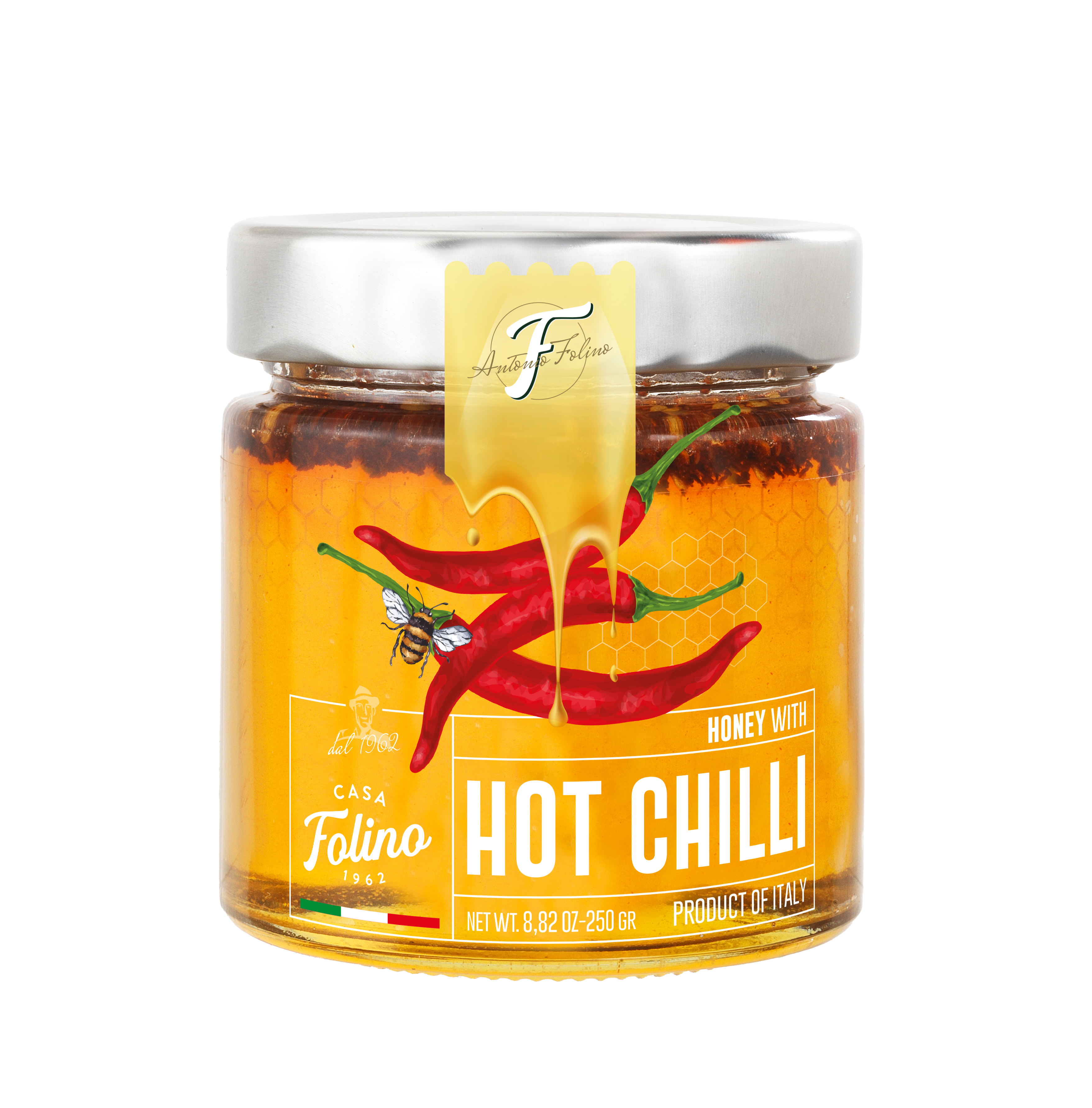 Acacia honey with chili flakes for a sweet and spicy balance, ideal for gourmet pairings.