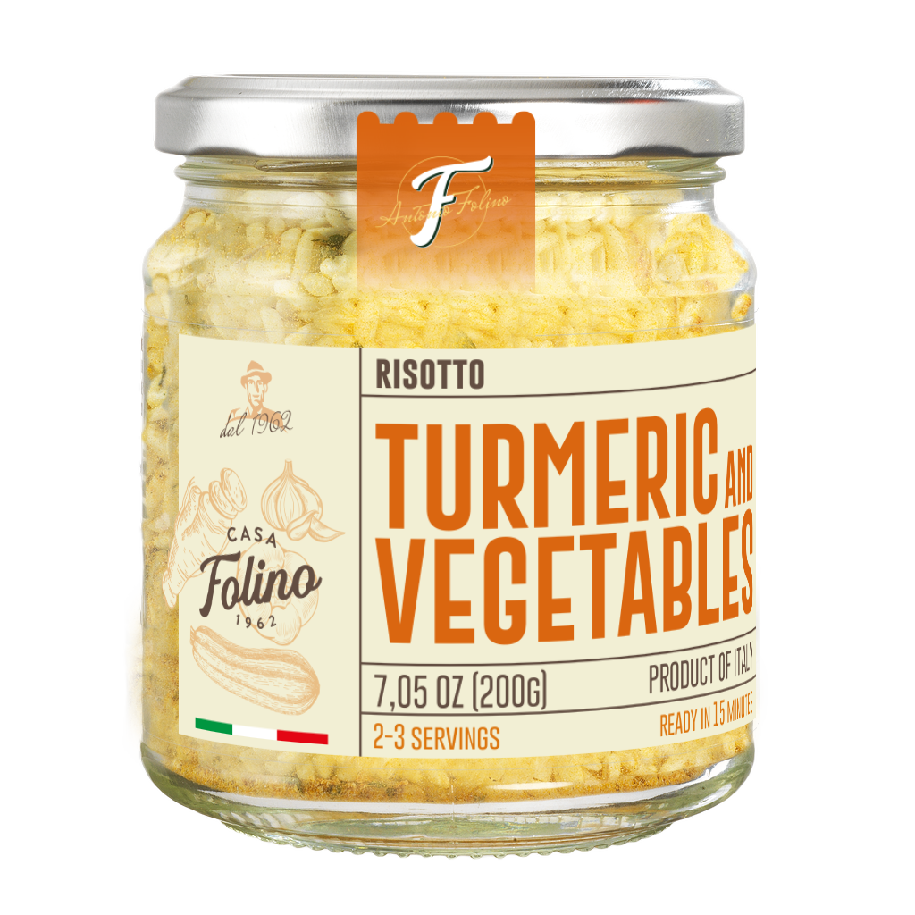 Ready-to-cook Carnaroli rice with turmeric and vegetables for a vibrant colour and delicate, balanced flavour.