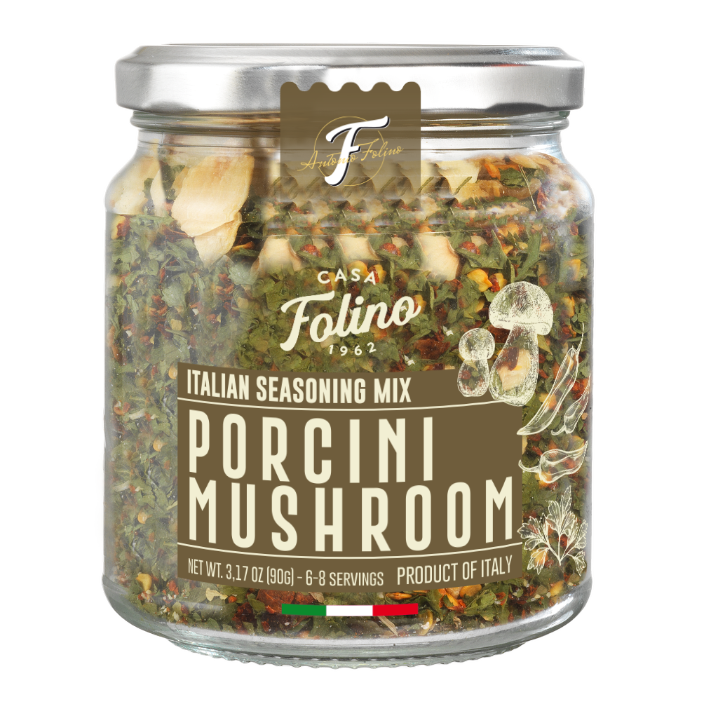 Seasoning mix with porcini mushrooms, chili flakes, garlic, and parsley for rich, earthy flavour.