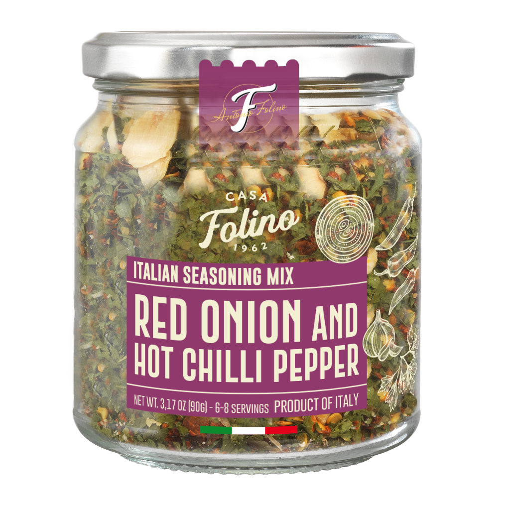 Spicy seasoning mix with chili flakes, garlic, and parsley for authentic Italian-style dishes.