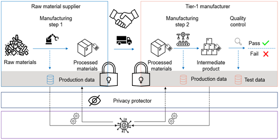 The core of FedProM is Vertical Federated Learning (VFL), a paradigm that facilitates joint data analysis across companies while ensuring that data remains private. By integrating advanced privacy-preserving technologies like Differential Privacy and Secure Multiparty Computation, FedProM allows for effective real-time process optimization without direct data sharing.