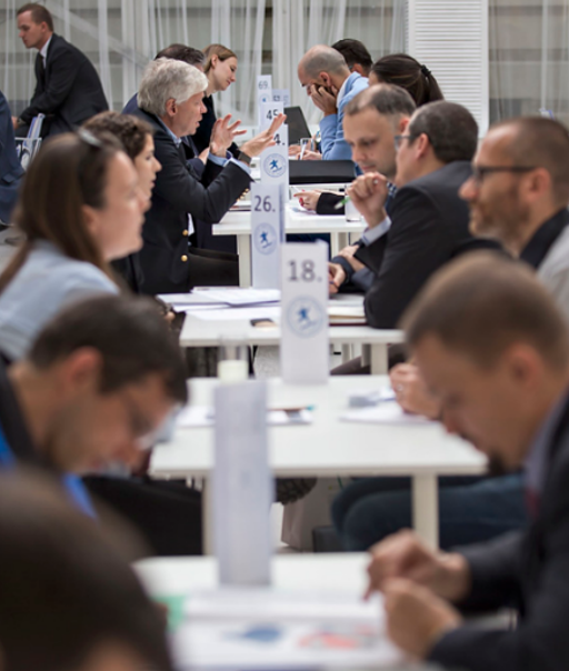 All participants are by default registered for the 1:1 networking (signing-off possible). To request a 1:1 meeting with one of the participants you simply browse the participants list and identify good matches. Afterwards you send your meetings requests and add a line why a meeting would make sense. Once the recipient(s) accepts your request the meeting will be scheduled on a reserved table and next free timeslot on the event.