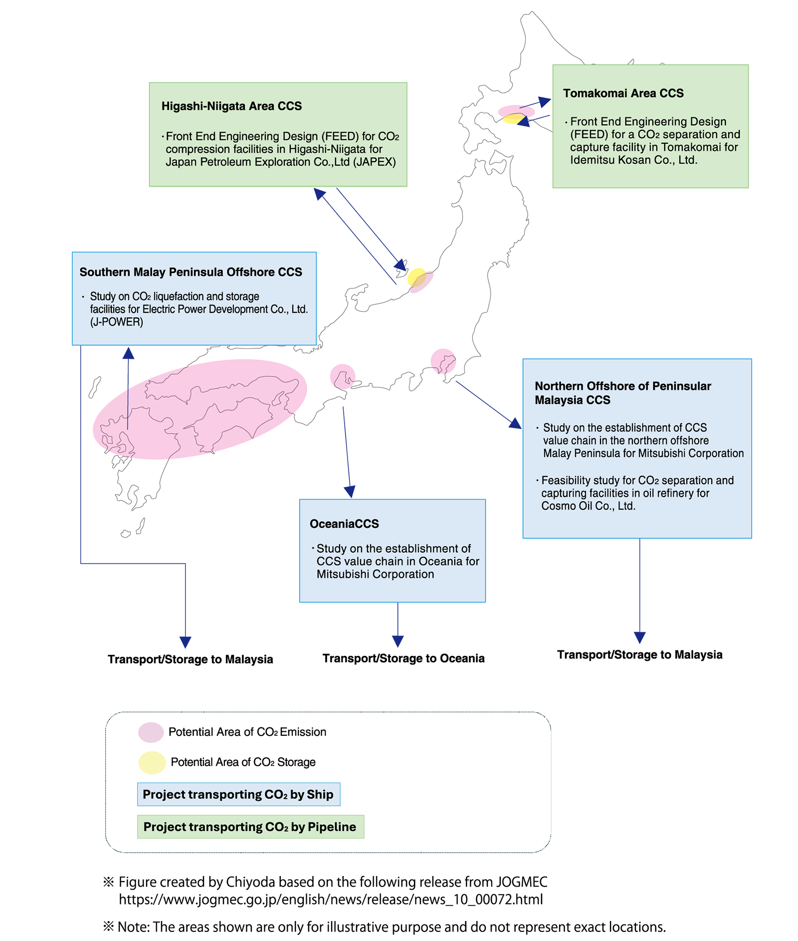 Chiyoda engaged as engineering service provider for multiple CCS projecs in Japan, supported by JOGMEC, which include CO2 seaquestration inside Japan and export CO2 to CCS site outside Japan.