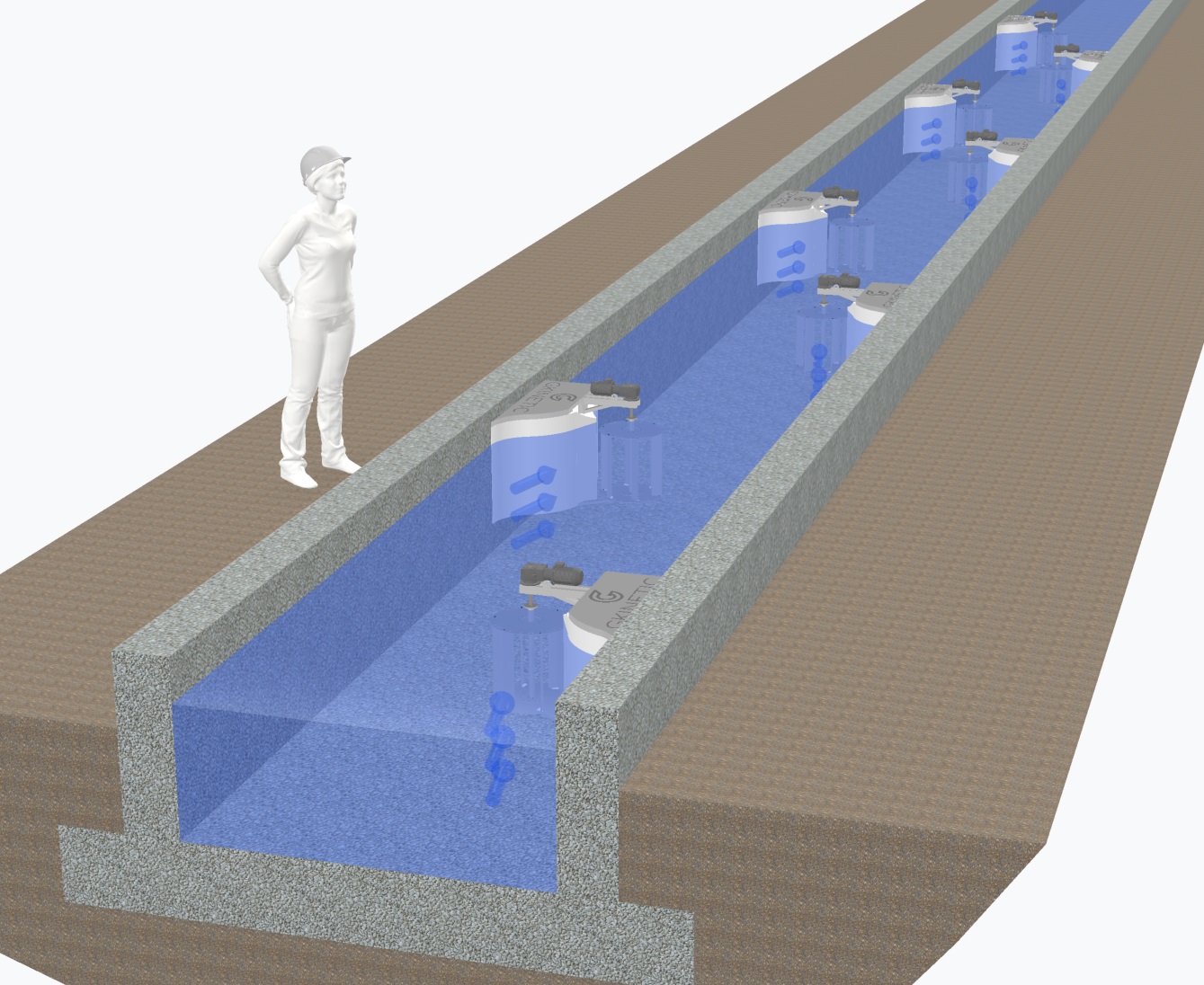 We've developed a range of compact, simple turbines that generate clean predictable energy from free-flowing water, such as rivers, canals and estuaries. Based on the patented flow acceleration and blade pitching technology developed for our larger device CEFA12, the CEFA1 and CEFA 6 area scaled down versions suitable for smaller channels. CEFA1 could be used for applications ranging from individual domestic rural electrification or in arrays to service a number of properties while the CEFA6 could be installed in industrial outflows in thermal power plants to water treatment facilities.