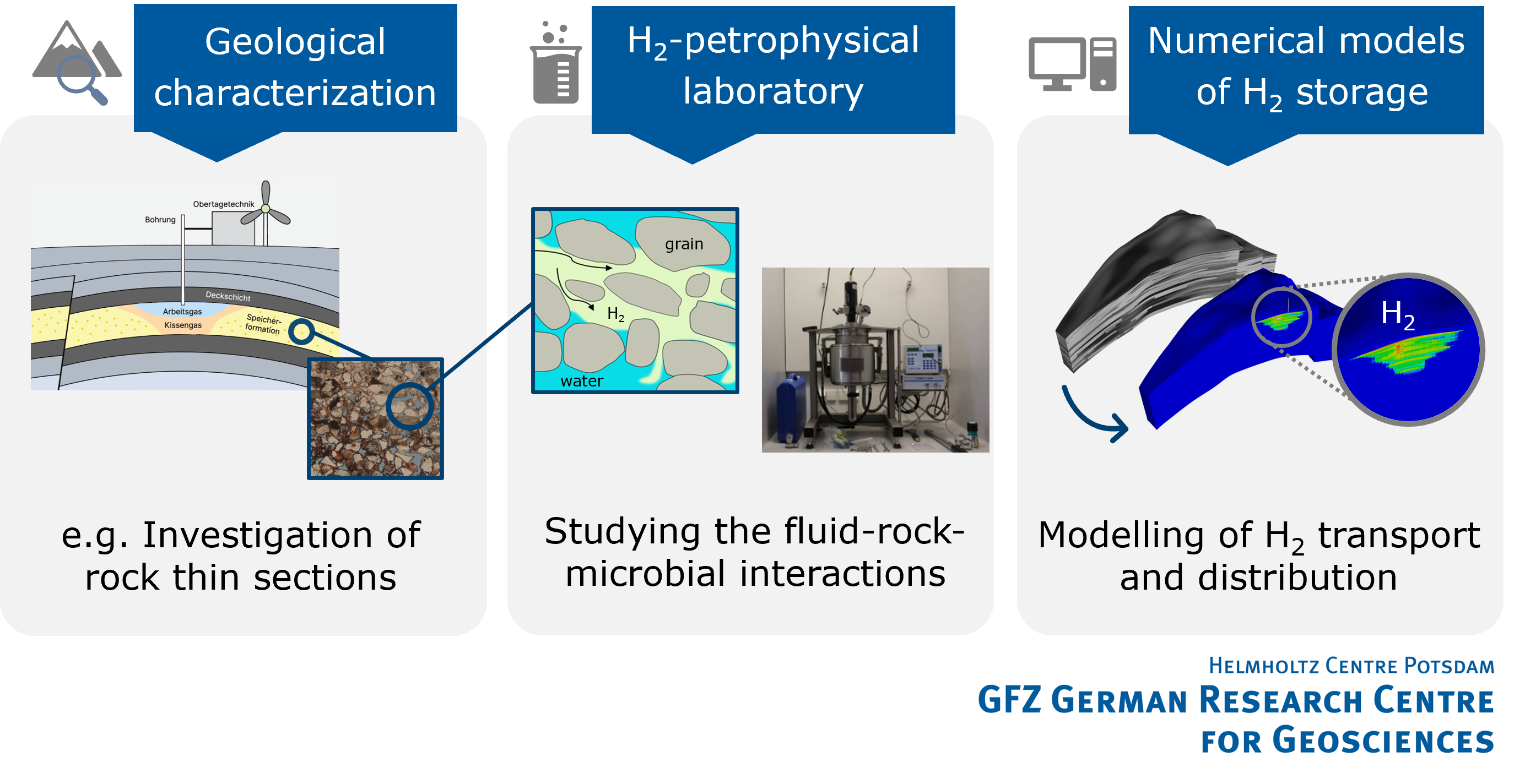 Our multidisciplinary research includes geological investigations, numerical simulations on various scales, and laboratory experiments to assess the feasibility of UHS in porous media. In particular, we are working toward developing an in-situ lab/pilot project to advance our research. Multiple aspects are being studied through diverse methodologies, such as static and dynamic reservoir modelling, fluid-rock-microbial interactions, and the geochemical and petrophysical changes that occur in rocks during UHS operations.