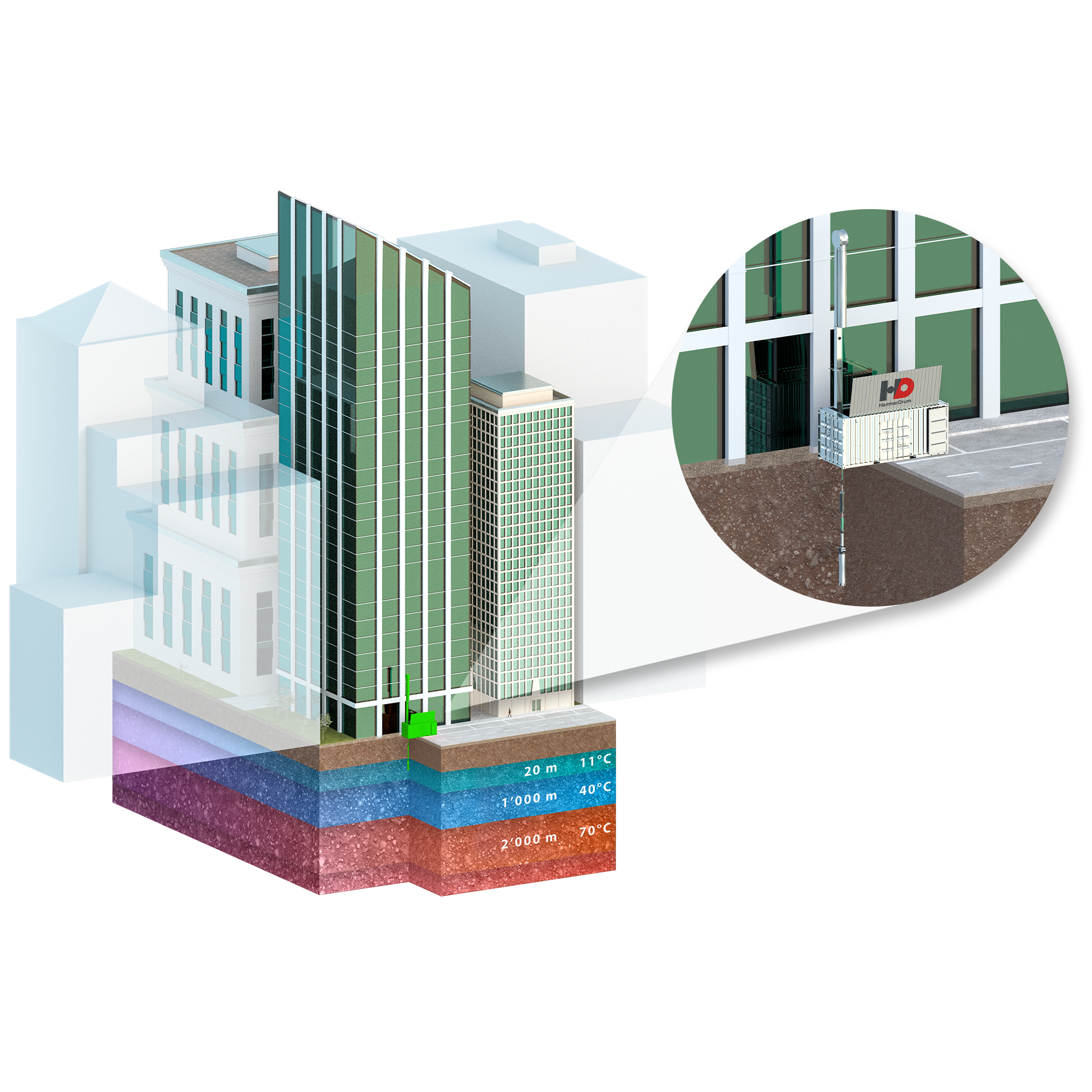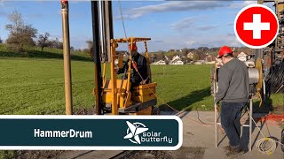 Cost-efficient and space-saving drilling technology: Specifically, the Swiss company has developed a machine that is located in the borehole and has all the necessary technologies to perform the drilling automatically. Unlike existing drilling methods (which are driven from the surface), our machine allows us to work in a very small space and largely automate the process. The drill is a 9 meter long, electrically operated machine. This is lowered directly into the well on a steel cable. Once at the bottom of the well, the machine is locked by a gripper and then drills a predefined section with a percussive rotary mechanism. The drilled material from the section is collected within the machine and pulled back to the surface by the machine after the drilling process is completed (batch drilling). At the surface, the drill can be emptied and prepared for the next drilling operation. To minimize downtime, a second machine can be sunk into the borehole immediately.