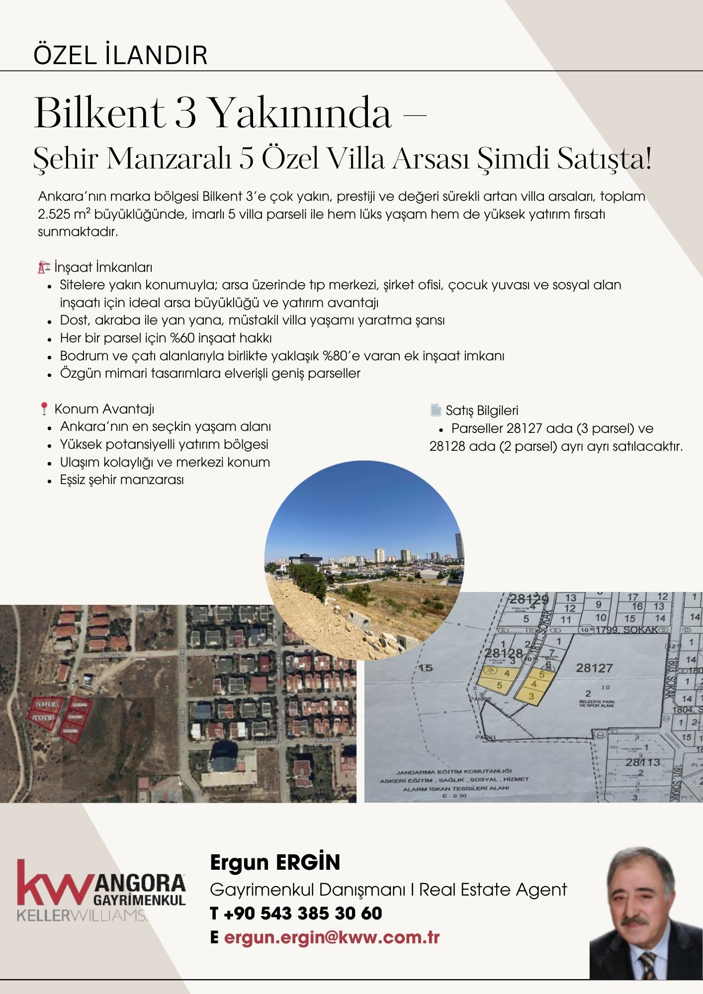 Located in Ankara’s prestigious Bilkent 3 area, these 5 villa plots total 2,525 m² and offer both luxury living and high investment potential.