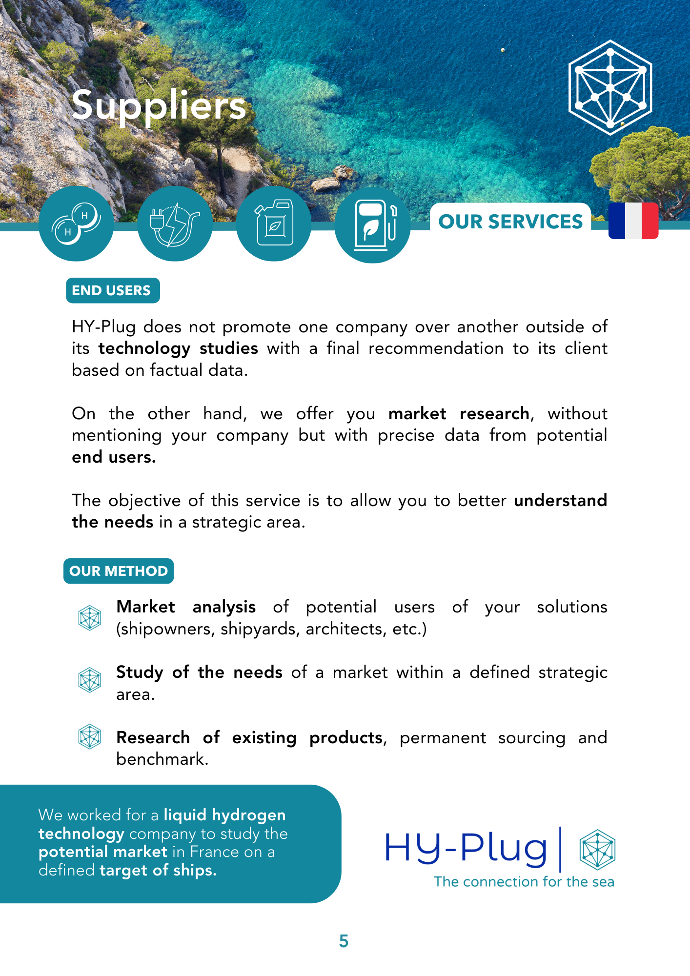 Nous avons travaillé pour une entreprise de technologie d'hydrogène liquide afin d'étudier le marché potentiel en France sur une cible de navires définis.