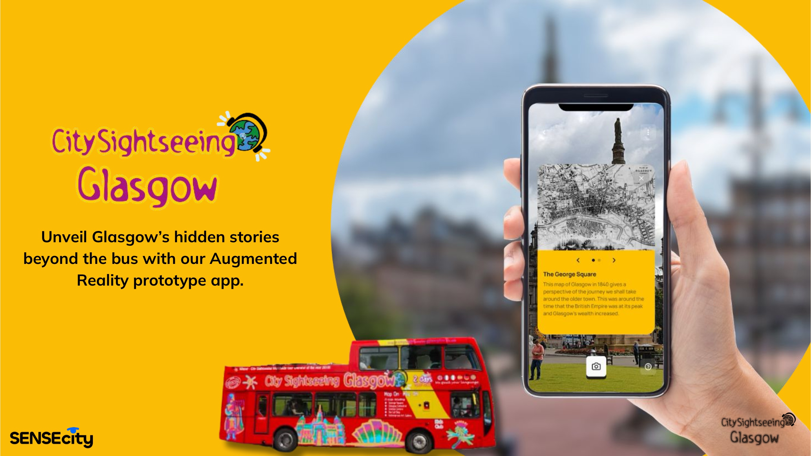 SENSEcity has collaborated with leading organisations including Historic Environment Scotland, Belfast City Council, City Sightseeing Glasgow, Brighton Dome, and Creative Informatics. From castle walls to city buses, our work invites people to explore culture not as something static, but as something they can step into, shape, and share.
