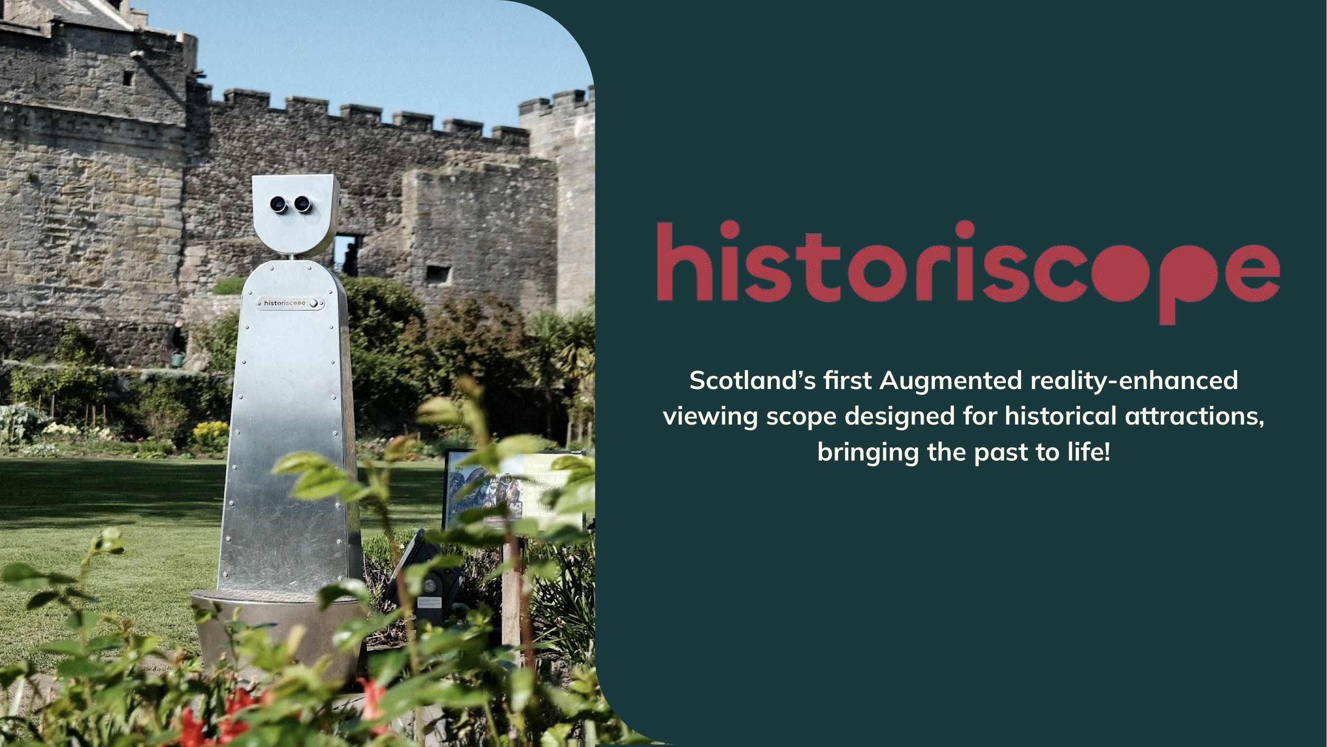 Our flagship product, Historiscope, transforms traditional viewing scopes into magical AR time machines. Visitors can look through and see history unfold before their eyes — where buildings once stood, where people once gathered, and where stories are waiting to be heard.