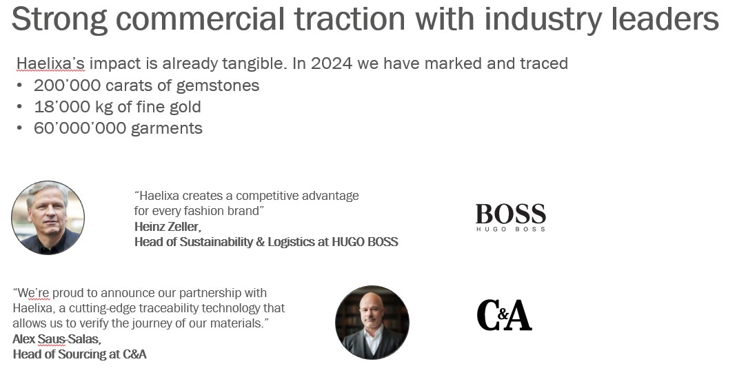 We work with industry leaders such as C&A and Hugo Boss in the textile sector and have shown recurring revenues >CHF 1million