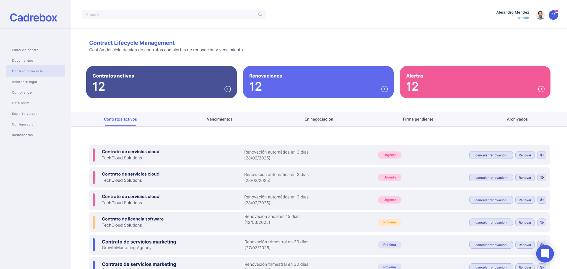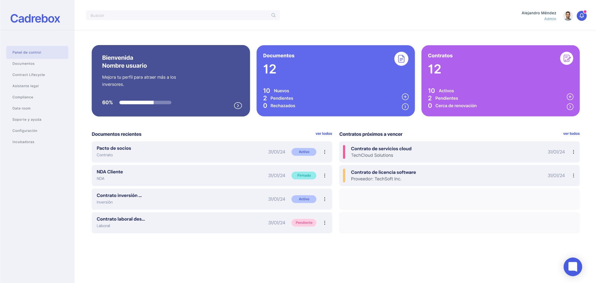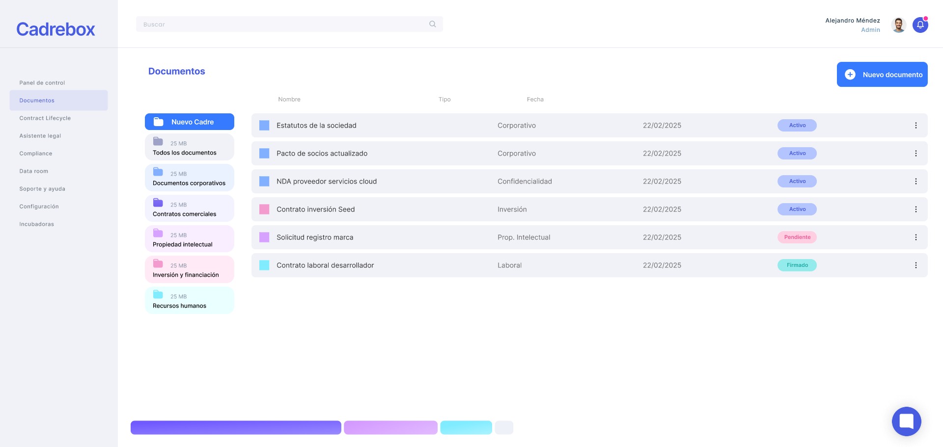 Cadrebox Core: Central platform with encrypted repository and contract automation.