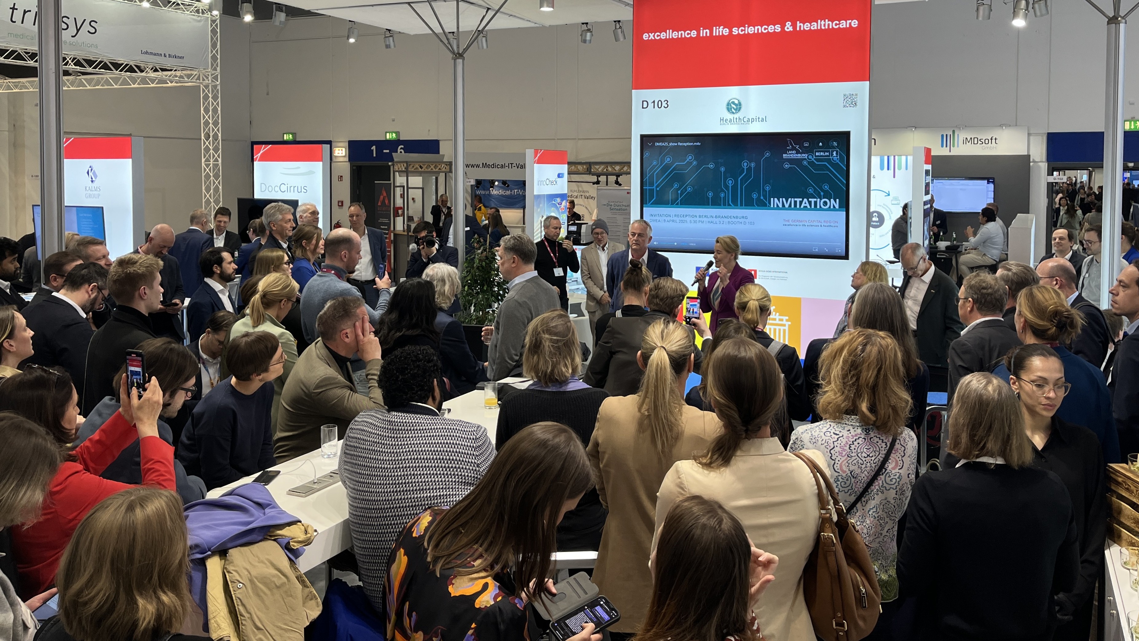 Continuing with our annual tradition, we are again organizing an evening reception at our joint booth of Berlin-Brandenburg at the DMEA. The reception will take place on April 22, 2026 at 5:30 p.m. at our booth (hall 3.2, D-103). As every year, we will invite relevant players of the HealthCapital region to open the evening with an insightful keynote.