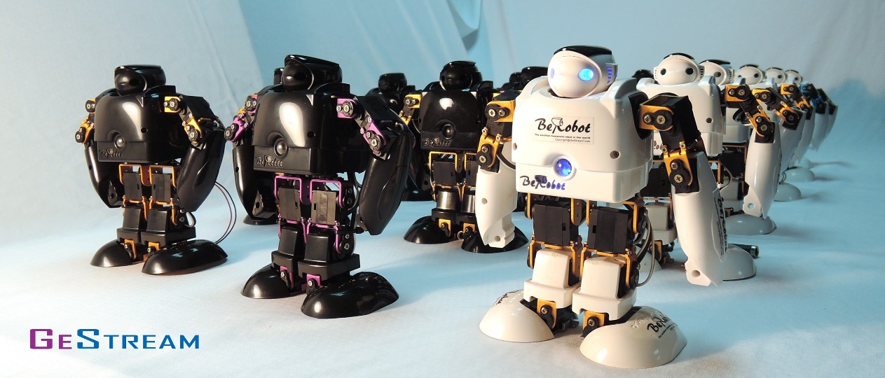 BeRobot development platform (recorded in the Guinness World Records) is an Educational STEM Robot, which combined the AI, IOT, Smart Sensing technology to control 32 digital servo motors, LED, Speaker, Sensors, wireless communication, Al-Mg-alloy bricks. BeRobot supports many programming languages (Graphic Software, Basic, C++, C#, Java, APP Inventor, Scratch, Blockly, Python, Labview…) BeRobot has AI system with Peripheral modules, including optical sensor, touch sensor, sound sensor, distance sensor, humidity sensor, G-sensor, Gyro-sensor, voice control module, brain wave control module, VR control module, gesture control module, IRDA/Bluetooth/wifi/RF remote wireless controller, APP for Computer/ Tablet/ Mobile phone. BeRobot has been mass production as many types (robotic dog, dinosaur, snake, bear, spider, scorpion…) with excellent quality (follow ROHS) in Taiwan, with 30 levels of BeRobot STEM Curriculum designed for Primary, High school, University, Adults, Engineers. http://www.BeRobot.com