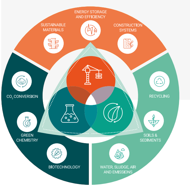 Sustainable construction, innovative materials, process innovation (energy storage, energy efficiency, production of materials and building systems)