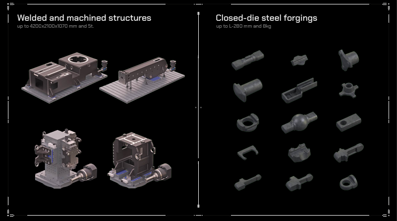 We specialize in manufacturing high-complexity welded and CNC-machined steel structures of various sizes, along with closed-die steel forging components for machine building and heavy machinery industries.