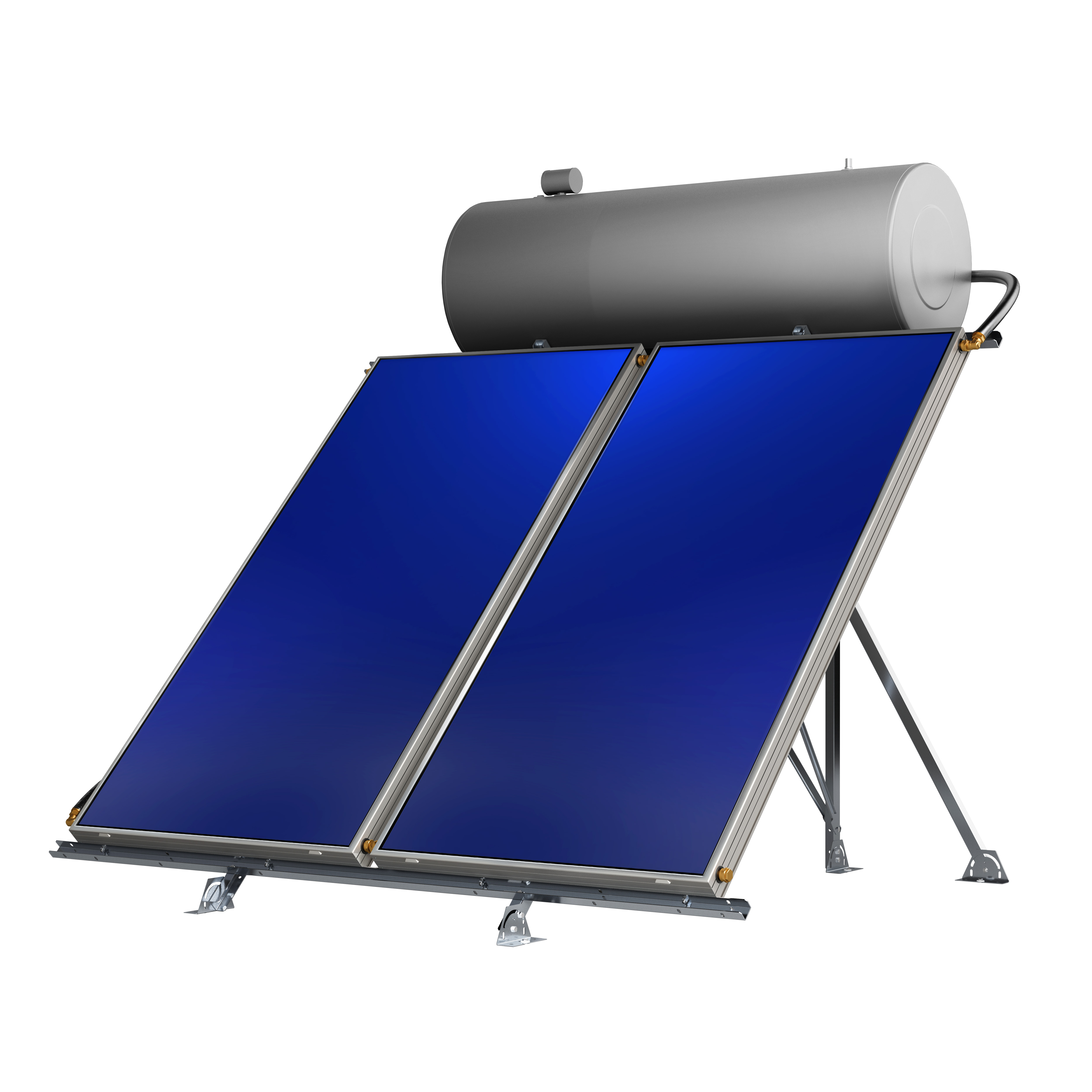 A complete solution of solar water heating system, which includes a universal mounting structure, that it can be installed in a flat or slopped roof, the accessory kit, the solar collector and the thermosiphon tank, in many different dimensions, ensuring maximum efficiency, depending on the use of each consumer.