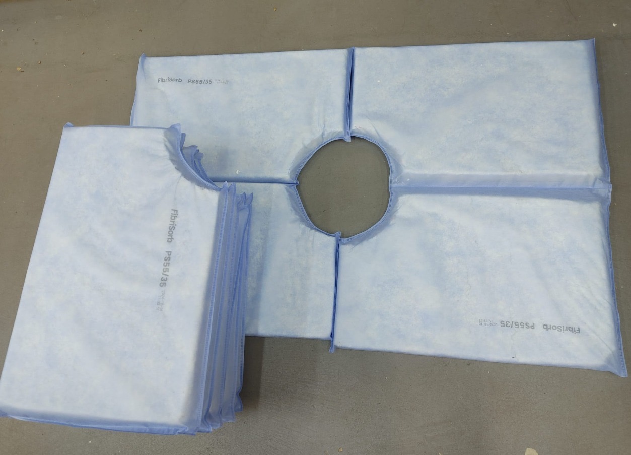 Efficient absorption of new biomaterials in connection with its mechanical stability and 3D shaping allows to create first of kind petrochemical absorbents dedicated for oil & gas industry: