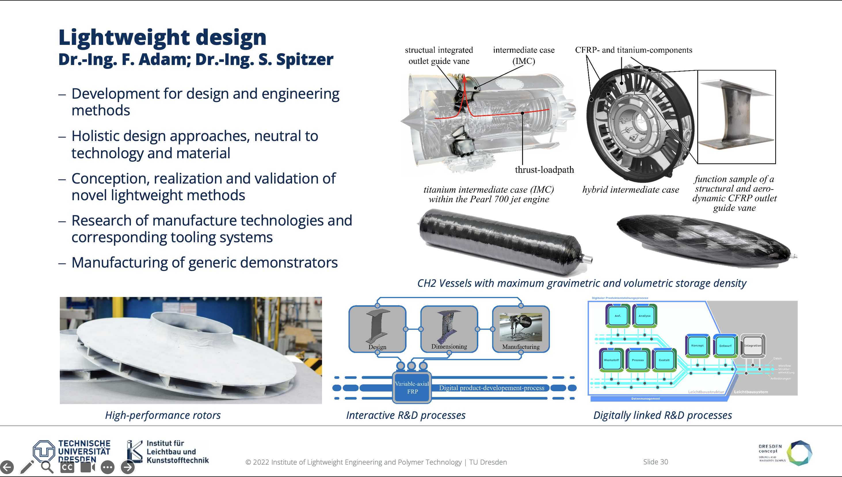 The Lightweight Design Group at the Institute of Lightweight Engineering and Polymer Technology (ILK), TU Dresden offers strong expertise for project cooperation in sustainable and innovative lightweight solutions, with a particular focus on aerospace and future mobility concepts.