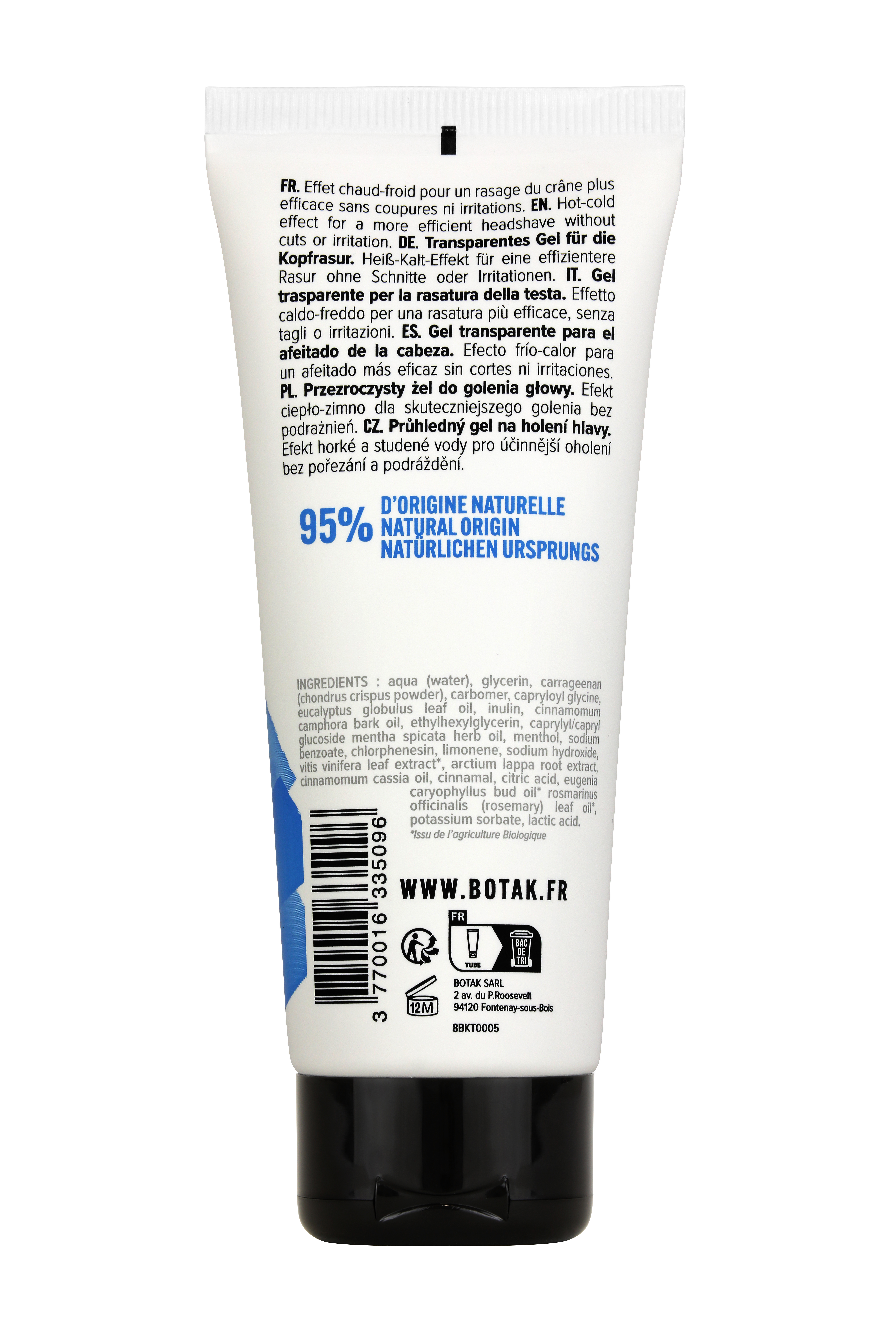And a cocktail of essential oils: a cryo-effect by stimulating the blood circulation and heat the zone, to open pores and provide a very effective shave, then cooling the area to close the pores and reduce the risks of irritation, spots, redness in the most commonly sensitive areas such as lower neck, around the ears, etc.