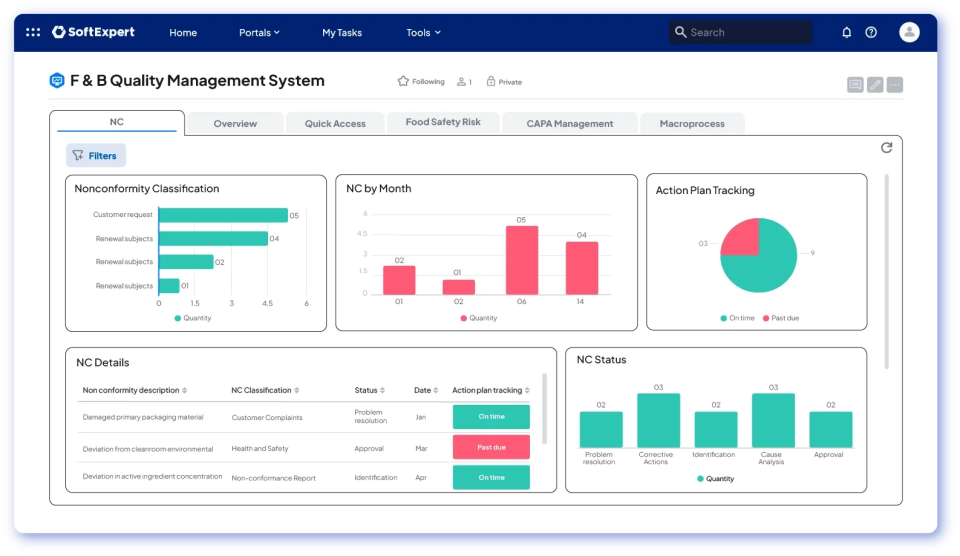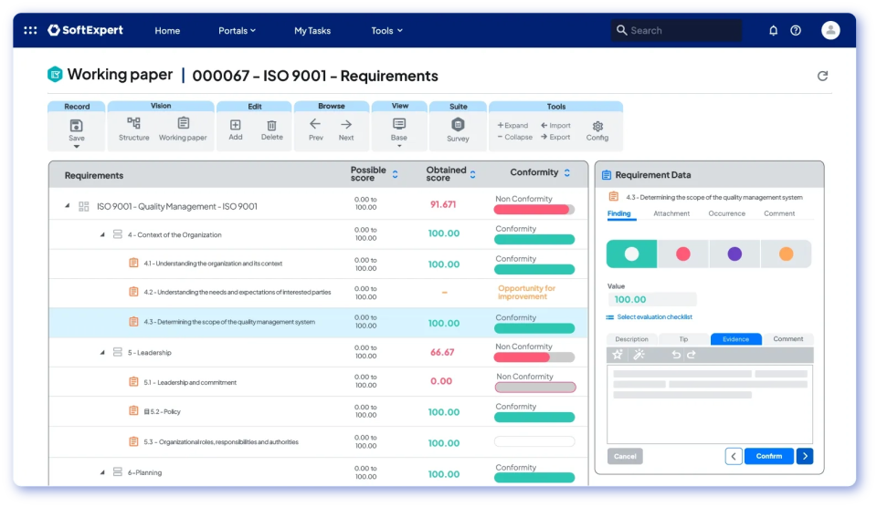 SoftExpert QMS is a complete solution that integrates and automates essential quality processes, such as planning, control, audits, documents, nonconformances, risks, suppliers and indicators. Gain more efficiency, standardization, and control across your entire operation.