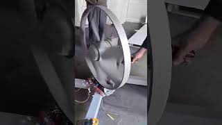 The concept uses a peripheral stator acting on a large-radius rotor ring, which increases torque efficiency and significantly reduces energy consumption compared to conventional motor-driven fans.