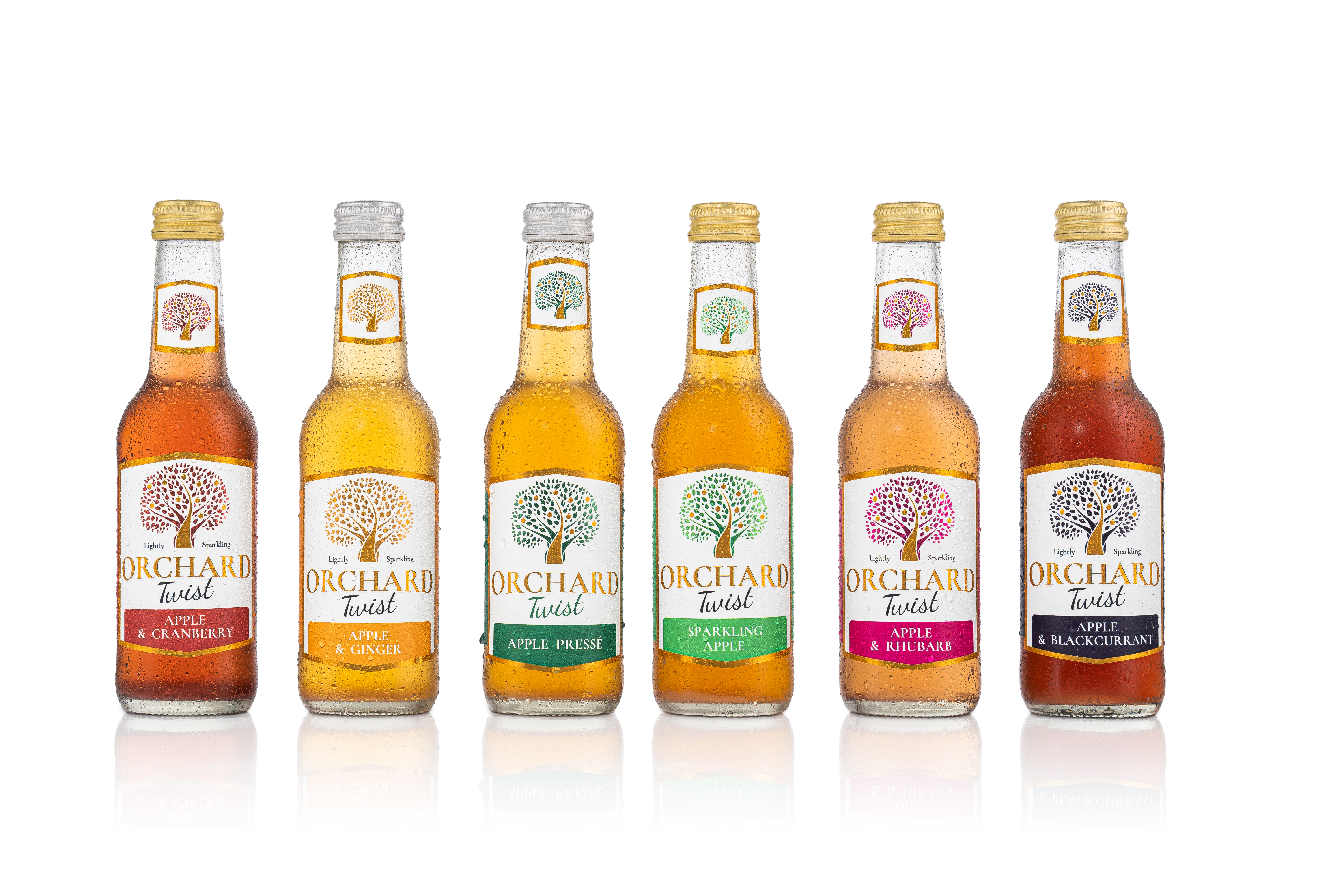 Enjoy this refreshing natural drink. Lightly sparkling fresh pressed apple juice with a twist. Our flavours include Sparkling Apple, Apple and Rhubarb, Apple and Ginger, Apple and Blackcurrant, Apple Presse, and Apple and Cranberry. 330ml bottles.