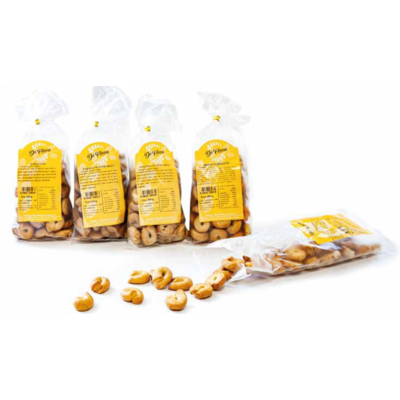 Salty baked product. We suggest to eat them hot with a beer. Flavours available: classic, pizza flavour, chili pepper, tris, fennel, speck, wholemeal, cacio e pepe flavour.