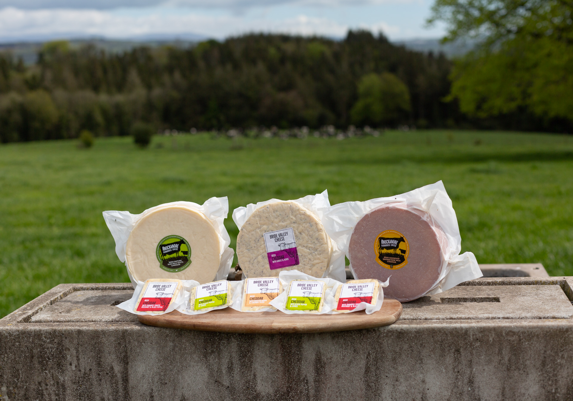 At Knockanore Farmhouse Cheese we produce a range of raw milk mature cheddar, alongside a range of premium flavoured pasteurised cheddars.