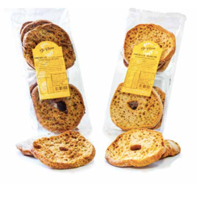 Our range of products includes Freselle, Bruschette, Tegamini from the crispy bread line, Saltimbocca, Pane pizza e Crostoni from the soft bread line, Taralli napoletani, Tarallini e Treccine from the snack line, Baci napoli, Mini hot-dog e Pizzette from the typical line.