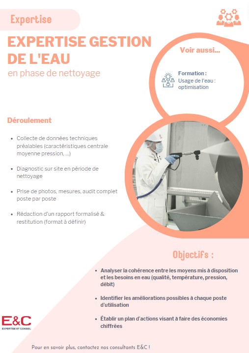 Analyse le niveau de maîtrise du poste eau en phase de nettoyage, et identification des leviers d'optimisation
