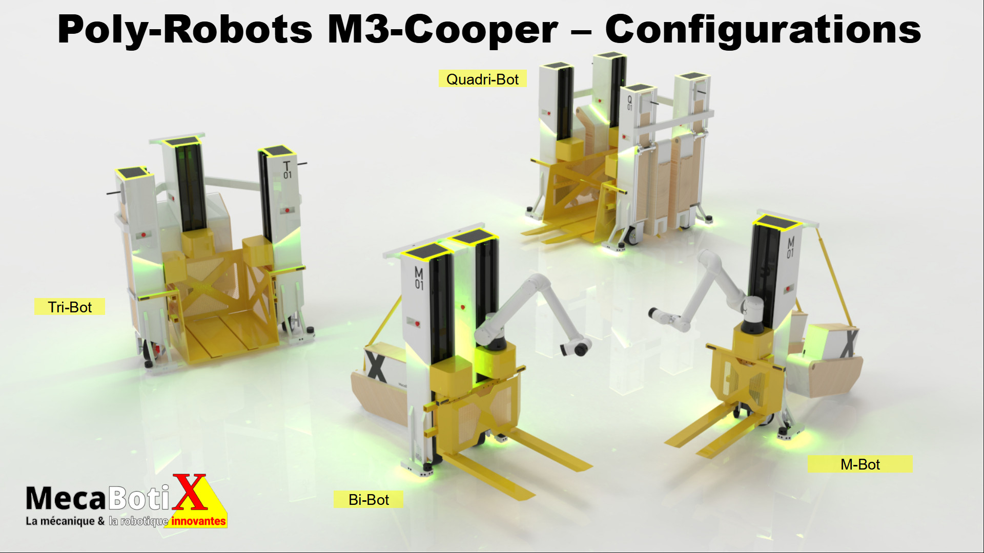 MecaBotiX est une start-up française disruptive qui conçoit, développe & commercialise les robots modulaires M3-Cooper, coopératifs et bio-inspirés des fourmis, pour transporter et lever tous types de charges, de 1 g à 1 tonne.