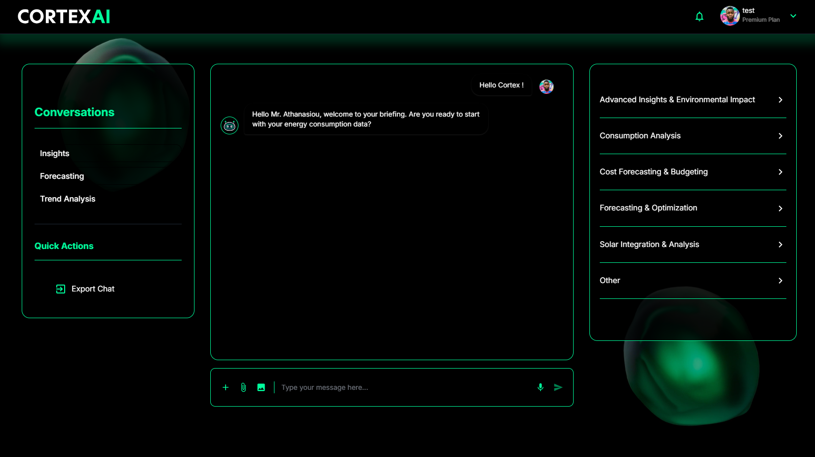The agent interacts with raw data, statistical data and algorithmic outputs and presents to corporate B2B clients Energy Strategic answers (under specific prompts, secure connection and GDPR compliance)