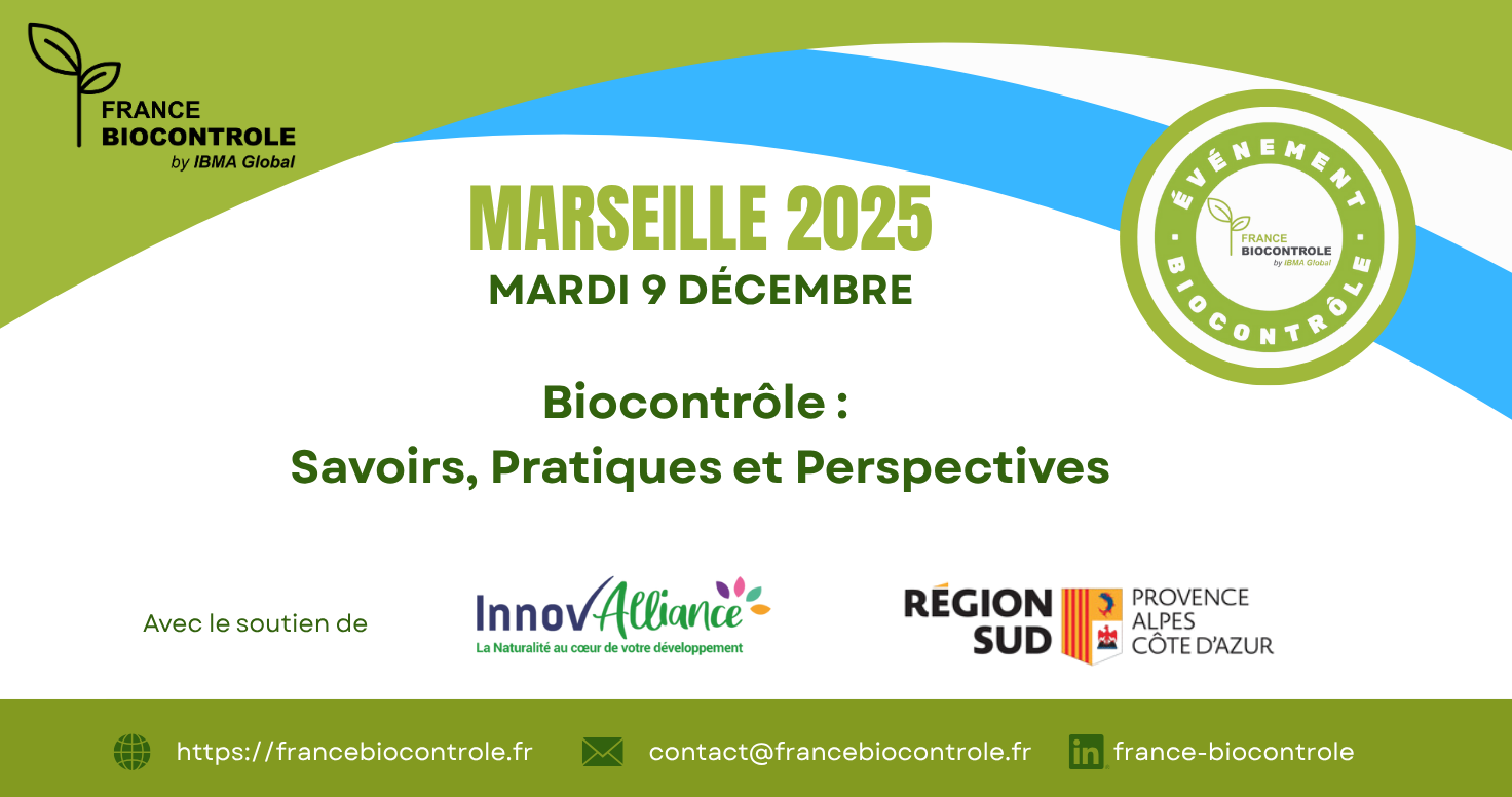 Nous avons le plaisir de vous convier à une Journée dédiée au Biocontrôle et à l'Agriculture, organisée par France Biocontrôle avec le soutien de la Région Sud Provence-Alpes-Côte d'Azur et du Pôle Innov'Alliance.