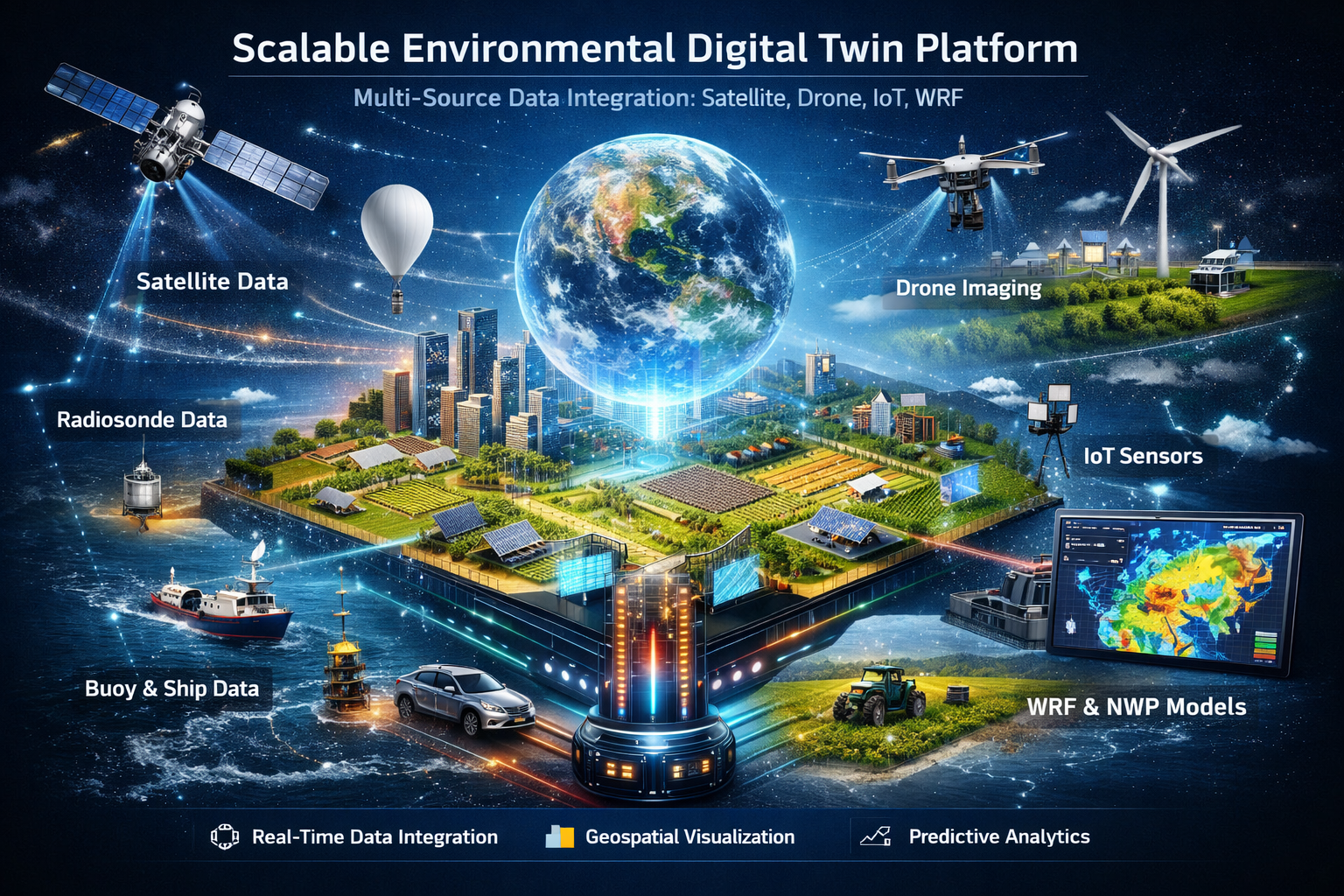 weather forecasting using the WRF IoT-based environmental monitoring Satellite-based crop monitoring 3D Digital Twin platform