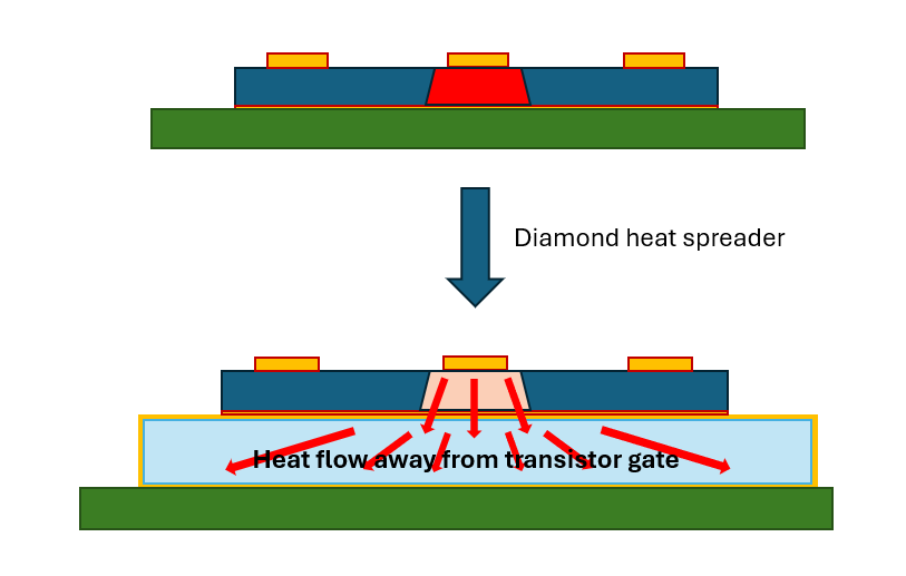 For high power, thermally challenged devices, diamond offers a solution for dispersing hot spots, allowing devices to run cooler.